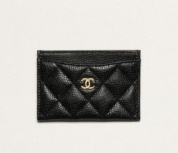經典卡片套 粒紋小牛皮及金色金屬 黑色